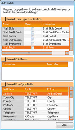 Drag Staff Pools out of the Add Fields window and drop it into the Custom Form Tabs grid in the Customisable Forms window.