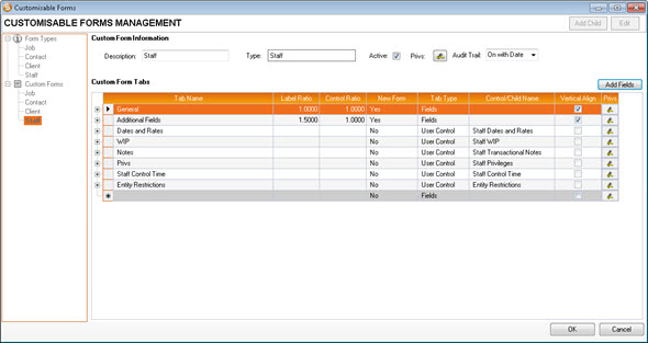 - In the navigation tree at left, select the Custom Forms / Staff node.