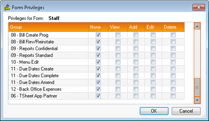 - Set the Group Privileges required to View, Add, Edit and/or Delete Staff Pools in the Staff record.