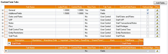 The Staff Pools fields are added to the grid row representing the Staff Pools tab.